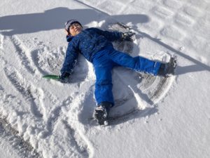 昨日の積雪で園庭には雪が積もり、特に屋上には綺麗な雪がたっぷり!!雪を見て「何して遊ぶ!?」と子ども達の目はとてもキラキラしていました!そこで始まったのは「人間 的当てゲーム」でした。年長さんが中心となり壁際に並んだ友達に雪玉を当てるというゲームです。「早く動いたら当たらない!」「ボールをよく見て避けよう!」と、とてもユニークな遊びが生まれました!その後は一人の子が「こうしたら鳥の形ができる!」という話から、雪に鳥の形をつくるのがブームになりました★雪があると普段とは違ういろいろ遊びができて、大満足な子ども達 でした!