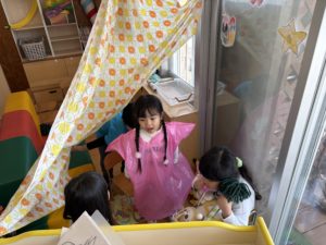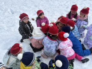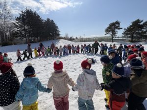 今日は、すみれ組・ひまわり組・ちゅうりっぷ組・たんぽぽ組で西岡高台公園に行きました!公園では、たくさんの友達と触れ合いながら身体を動かして楽しめるように集団遊びができるように計画すると「花いちもんめしたい!むっくりくまさんも!」とアイディア満載の子ども達でした。広い環境の中、のびのびと身体を動かしたり、笑い声が溢れる時間となりました。公園から帰ってくると4クラス混合の縦割りクラスでお弁当を食べ、「○○ちゃんとお箸一緒だ!」など共通の話題で、更に友達同士の仲が深まったように感じます。たんぽぽ組の教室では、お医者さんごっこが人気のようで年長児が椅子を並べ、病院の待合室のようにしたり、タオルでカーテンのようにし、診察室をつくる様子をみた年中児も「やりたい!」と興味が湧き、盛り上がった遊びとなりました。年長児とかかわれる日数も残りわずかではありますが、たくさんの思い出をつくれるようにかかわっていきたいです!(^^)!