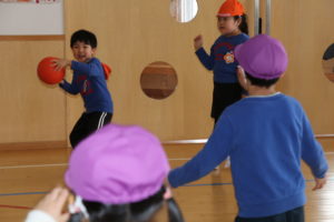 今日は年長組のドッジボール大会でした。年長組の子ども達が2学期の終わりから取り組んできたドッジボール。取り組み始めた当初は自分が投げたい!という気持ちが強かったですが、ドッジボール大会が近づいてくると「外野に行った子を戻した方が勝てるね!」「チームの皆が投げられる方がいいよね!」と仲間意識が高まり、「皆で力を合わせて頑張るよ!」と意気投合した気持ちに変わっていきました。結果は…1位ひまわり組白チーム、2位ひまわり組の紅チーム、3位すみれ組の紅チーム、4位すみれ組の白チームでした。「喜び」や「悔しさ」「頑張った気持ち」が交錯し、皆が意欲的に参加した充実したドッジボール大会になりました。帰りの自由活動でもドッジボールをしよう!という子ども達もたくさんいて、大会が終わったからもうしない訳ではなくまだまだ子ども達にとっては心から楽しみたい活動なのだ!という事を改めて実感しました(^^)/